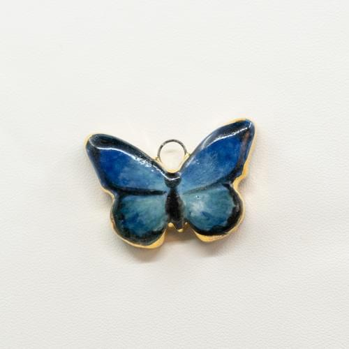 Hand painted blue butterfly with solid gold background framed in 24 karat gold.