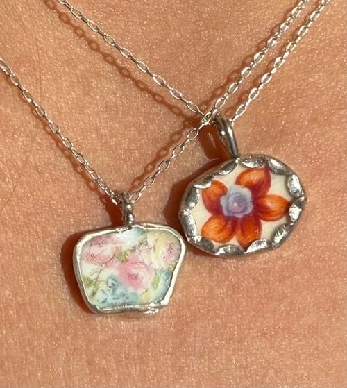 Pastel Flowers Silver Pendant SP--017