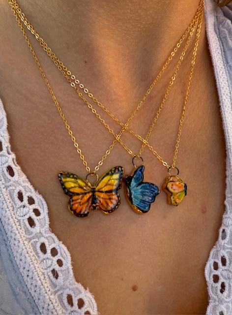 Small Blue Half Butterfly Pendant P-053